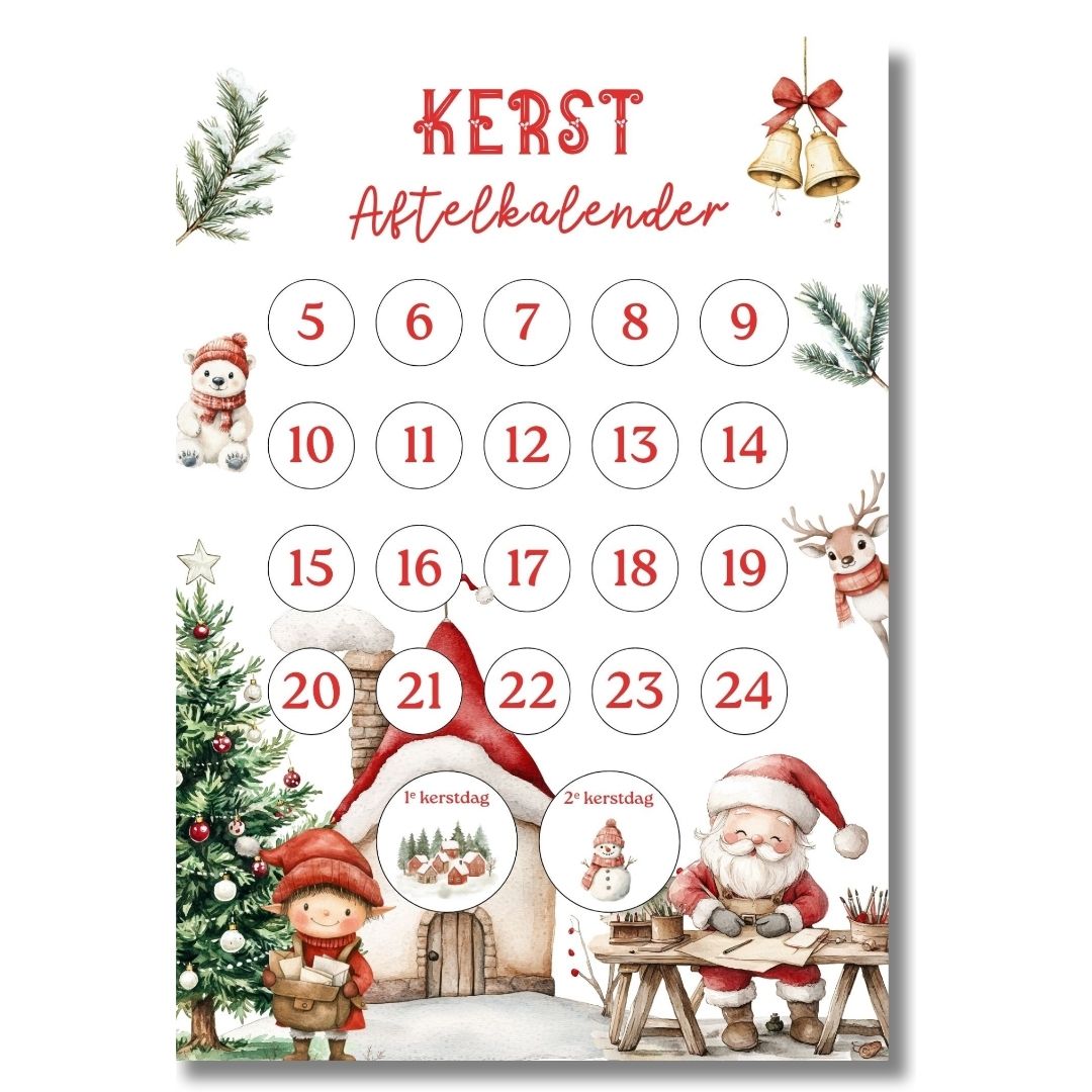 Maak van de decembermaand een warm en feestelijk moment met deze Kerst aftelkalender printable. Tel samen af en creëer mooie herinneringen in de aanloop naar Kerstmis!