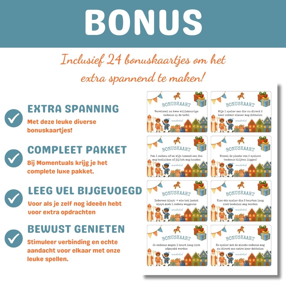 - Bonuskaarten met grappige en verrassende opdrachten
